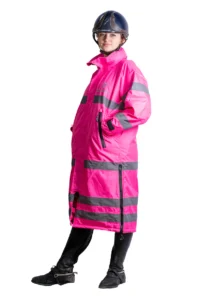 We LOVE hi-viz! With a 15,000 waterproof rating, fleece lining and leg straps so you can ride, you’ll be warm and safe while out on the roads.